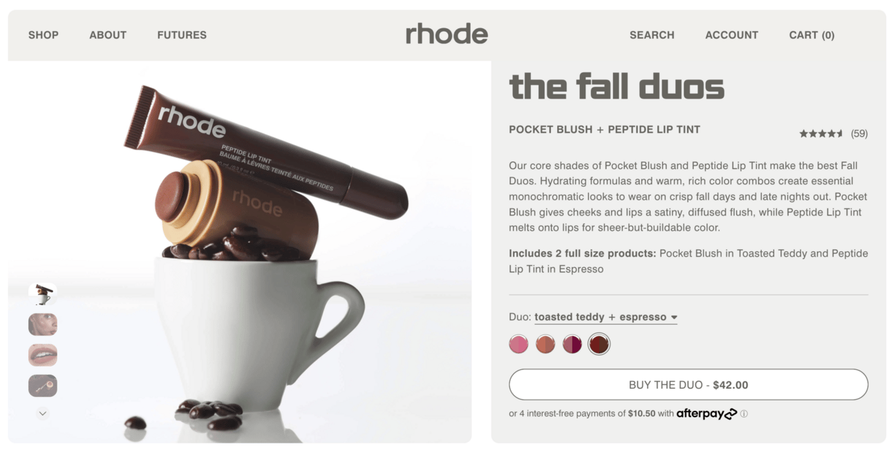 After a customer already decided on a product and adds it to their cart, the cart drawer is the perfect spot for items that naturally pair with the product, e.g. items that “complete the look”: