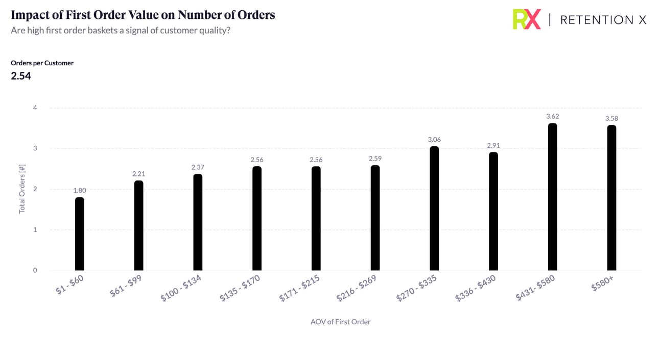 There is a strong correlation between AOV and the number of purchases a customer makes after that order. The higher the AOV, the more orders will follow. It's that simple. Increasing AOV is therefore an incremental growth driver.